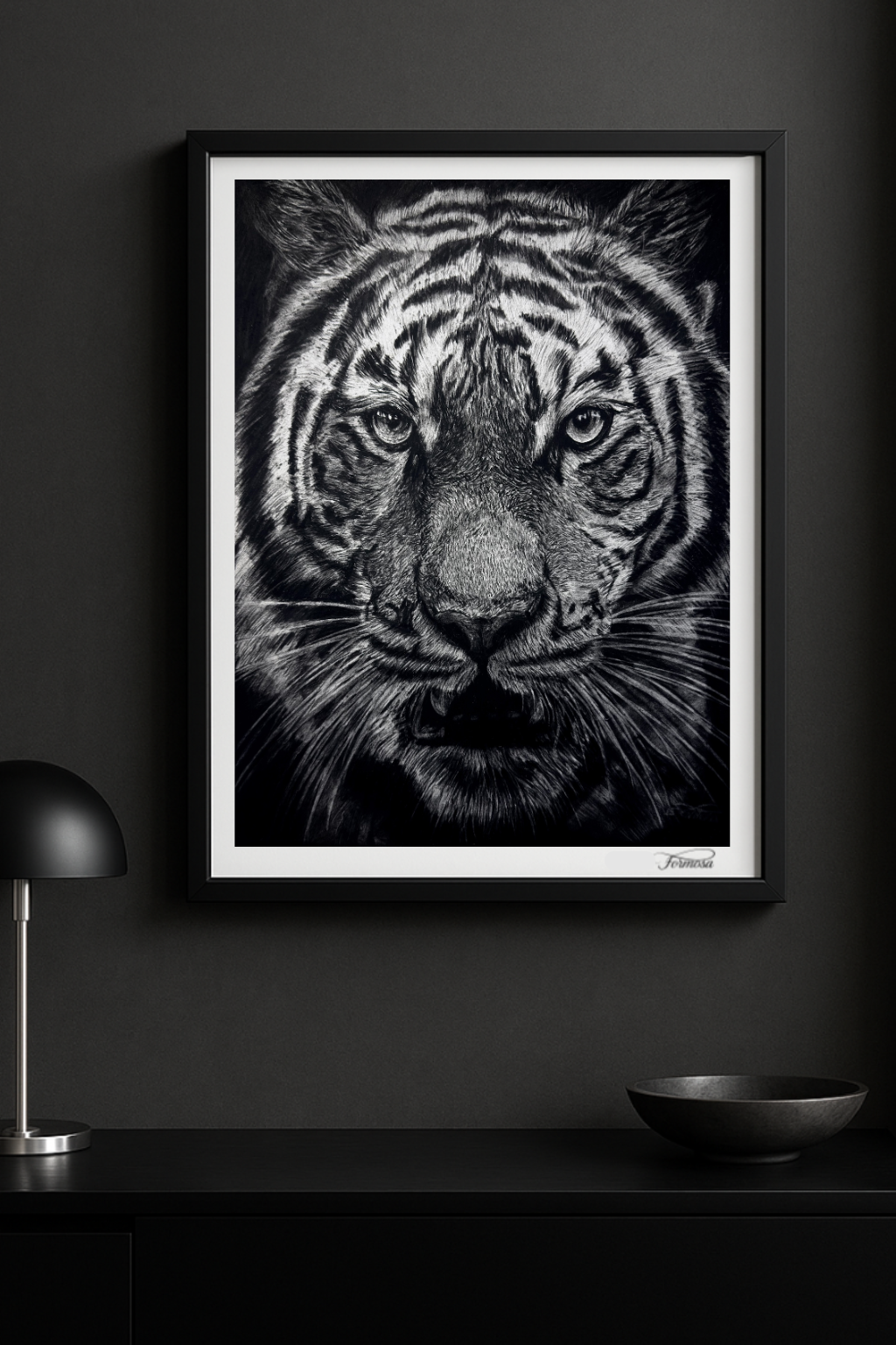 This is the moment before movement — when power no longer needs to prove itself, when dominance becomes quiet, absolute, inevitable. Every scar, every stripe, every shadow is earned. Not through chaos, but through patience. Through survival.